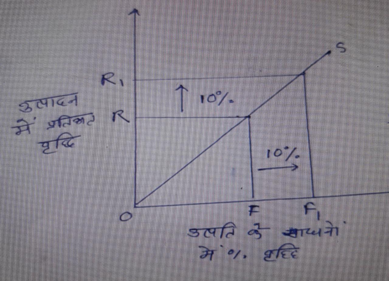 चित्रानुसार उत्पत्ति के साधनों में 10% की वृद्धि करने पर उत्पादन में भी भी 10 % की ही वृद्धि हो जाती है स्थिर पैमाने के प्रतिफल की दशा को स्पष्ट करती है |